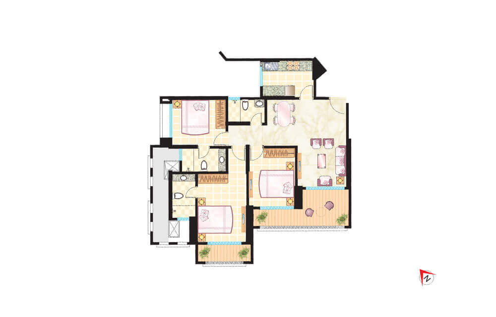 The interiors, furniture, fittings, fixtures, etc. shown in the image/drawing are only artist's conception and not part of actual amenities provided. All internal dimensions of carpet area are from unfinished wall surface. Minor variations/tolerance of +/- of 3% in carpet area may occur on account of design and/or construction exigencies. Conversion: 1 Sq. Mt = 10.764 Sq. ft